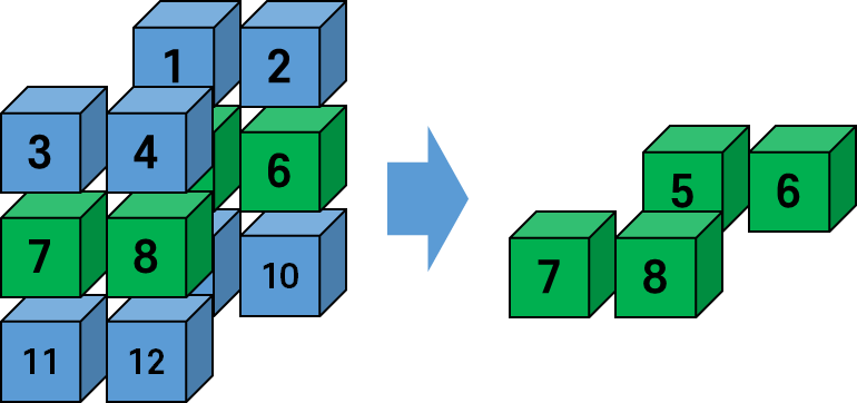 tensor([[1., 2., 5., 6.],